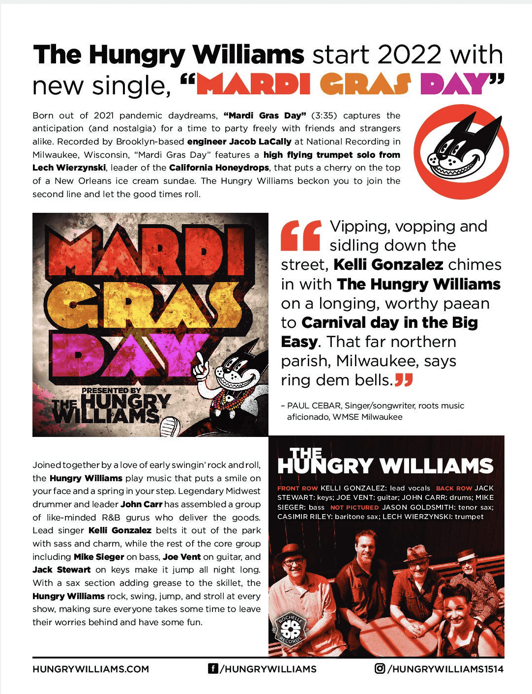 The Hungry Williams start 2022 with a new single, "Mardi Gras Day"