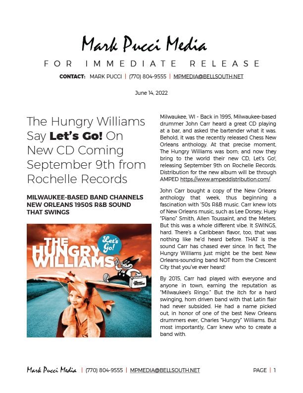 The Hungry Williams Say Let’s Go! On New CD Coming September 9th from Rochelle Records